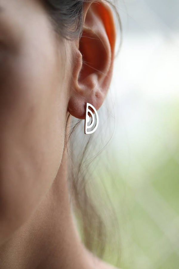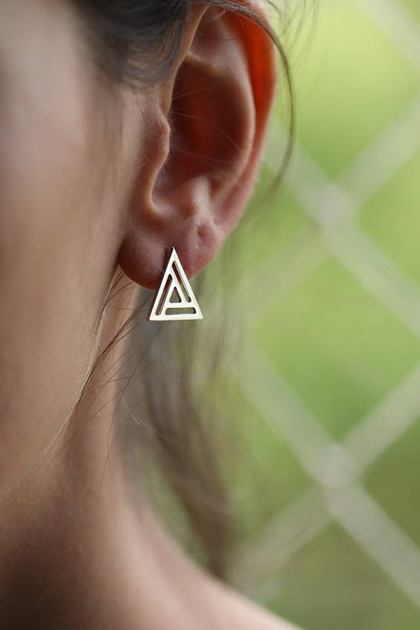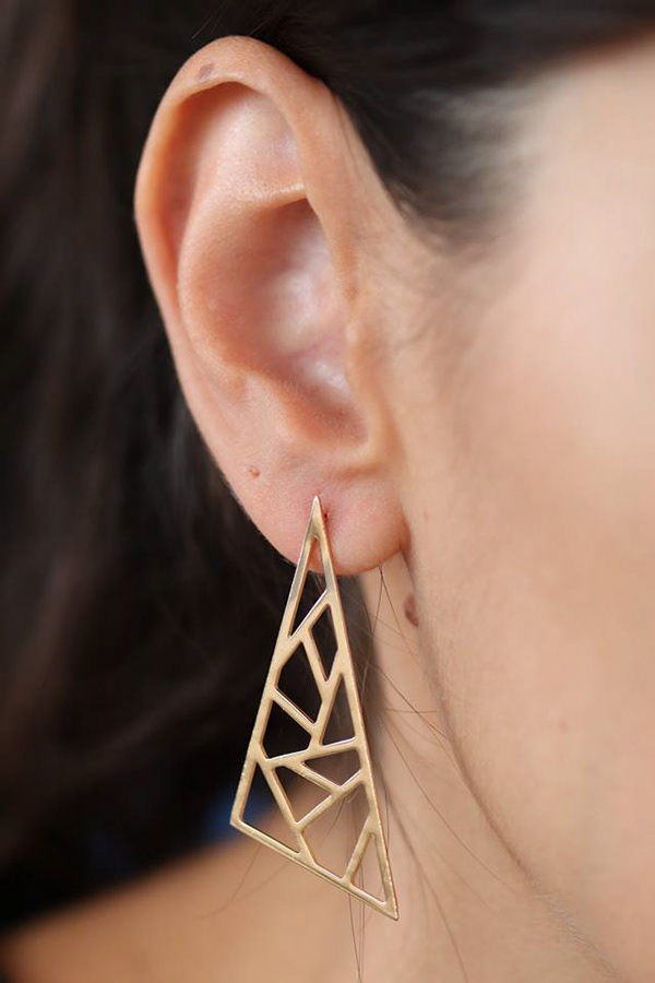A linha de acessórios Geô é composta por brincos de diversos tamanhos e alguns modelos de colares.